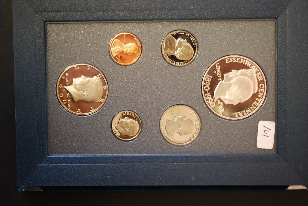 1990-S US Mint Prestige Proof Set W/1990-P Eisenhower Centennial Commerative $1; EST. $25-40