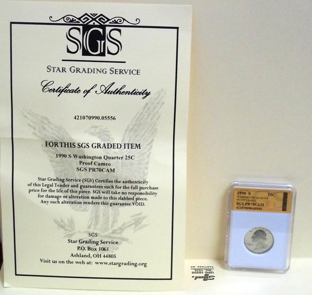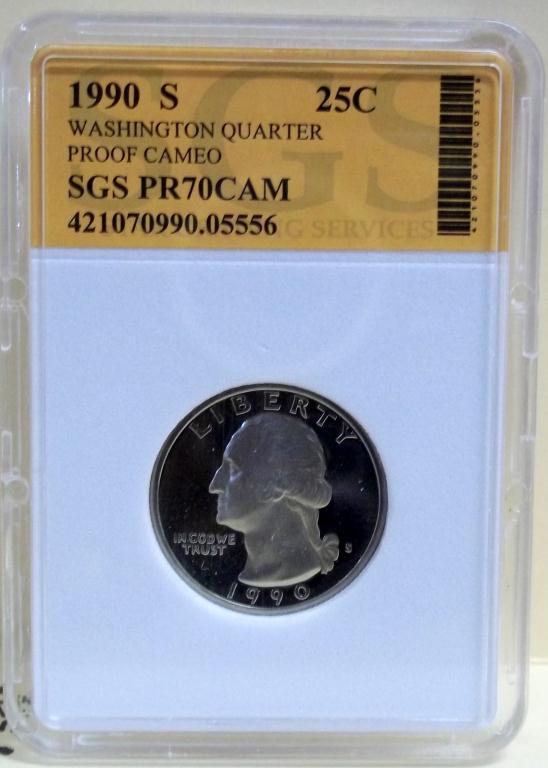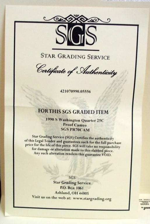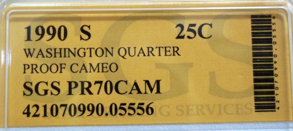 1990-S Washington Quarter SGS PR-70CAM with CofA