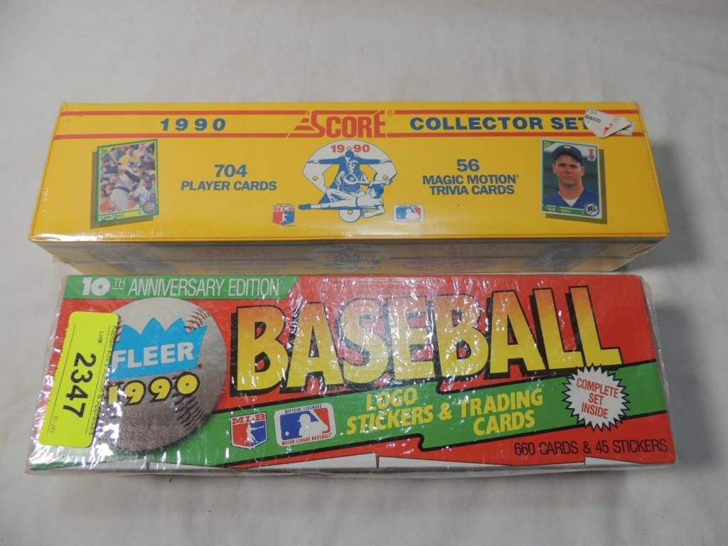 COMPLETE BASEBALL CARD SET. COLLECTORS SET . SEALED 1990 SCORE AND 1990 FLEER CARD SET. TRADING CARDS. MOTION CARDS. AS SHOWN. SEE PHOTO FOR MORE DETAILS.