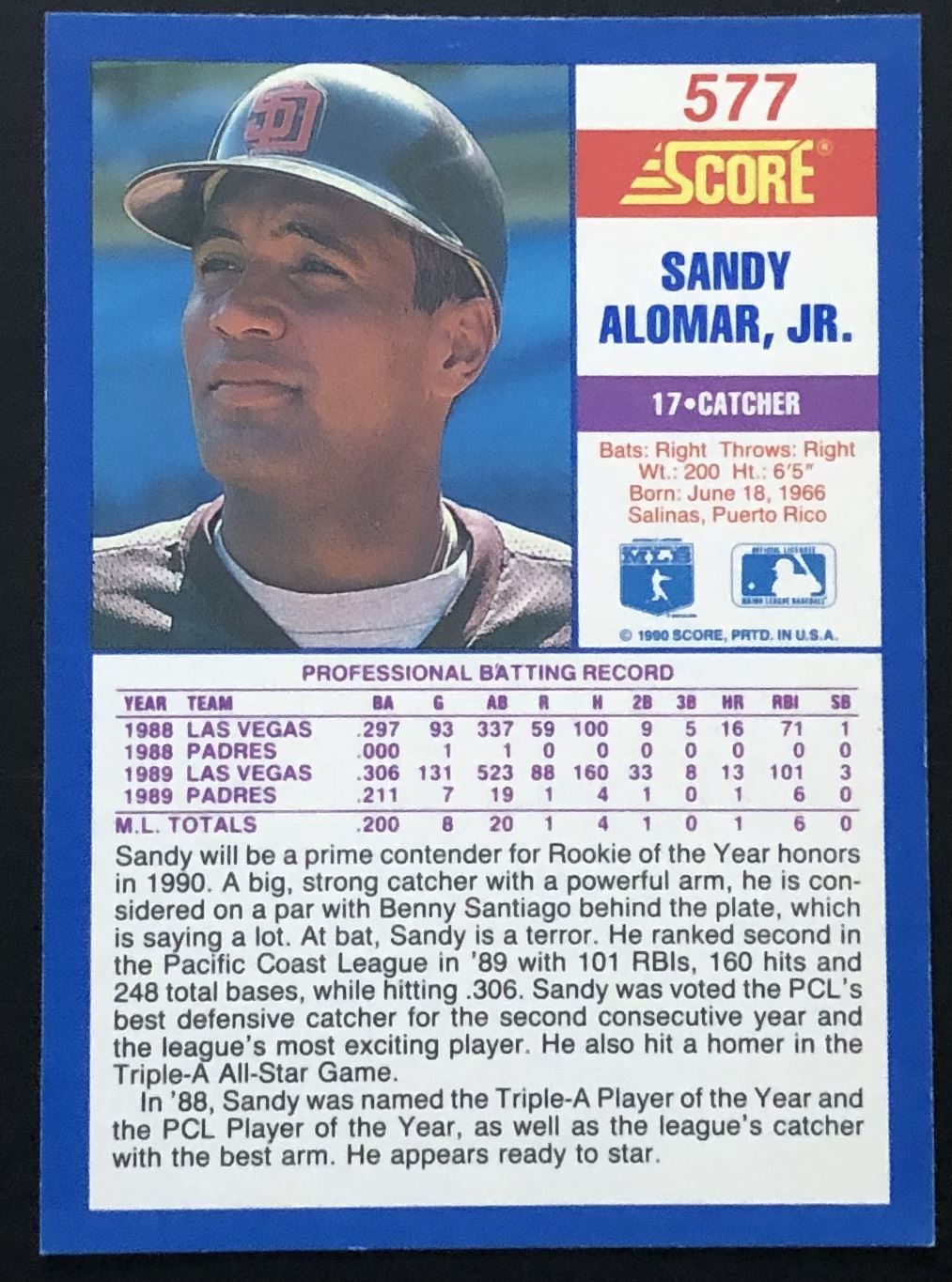 Card #577 MLB, baseball, hall of fame, rookie
