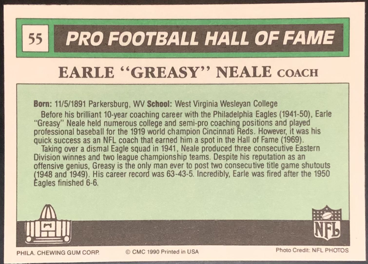 Card #55 NFL, football, hall of fame, Philadelphia Chewing Gum