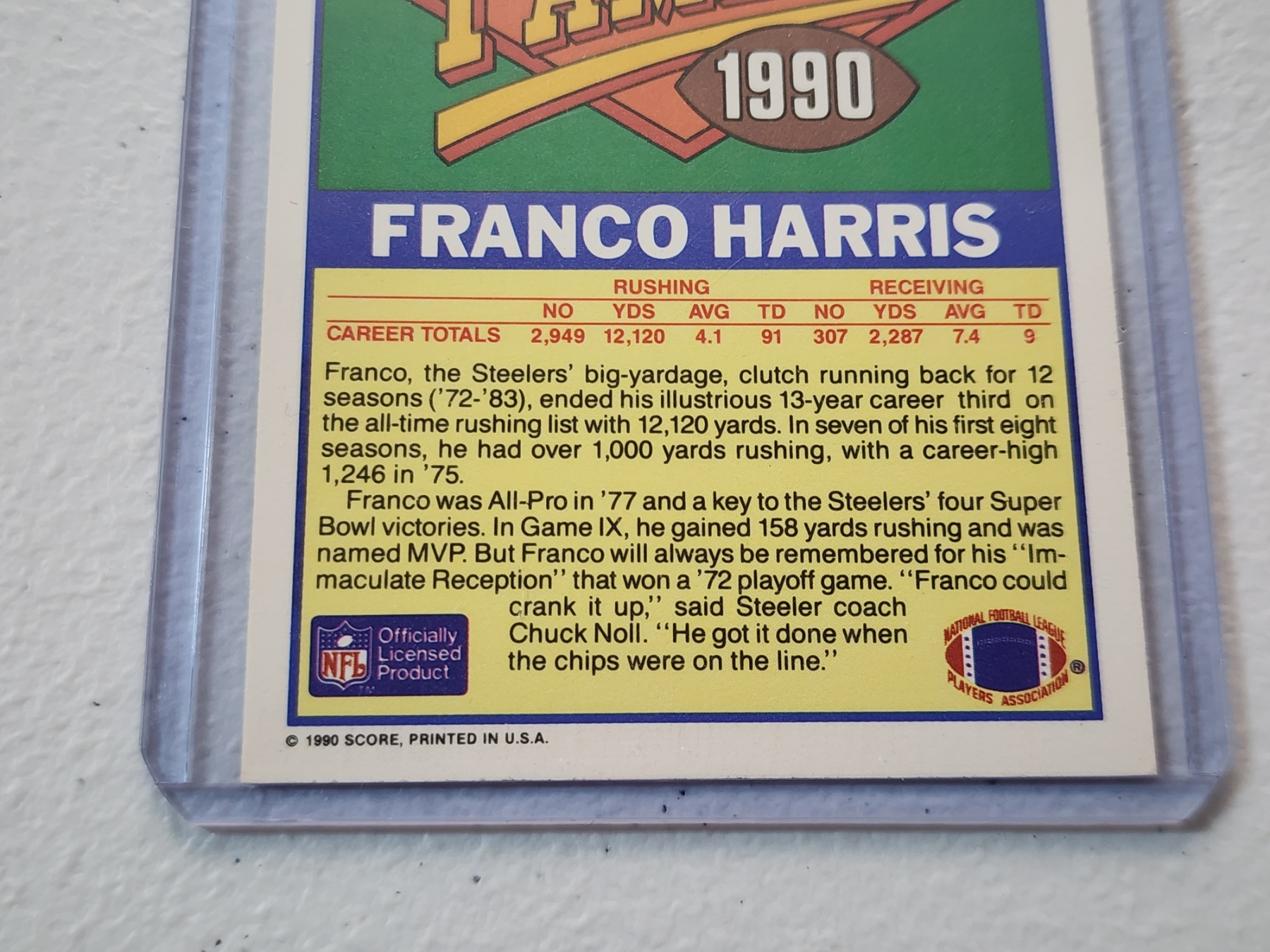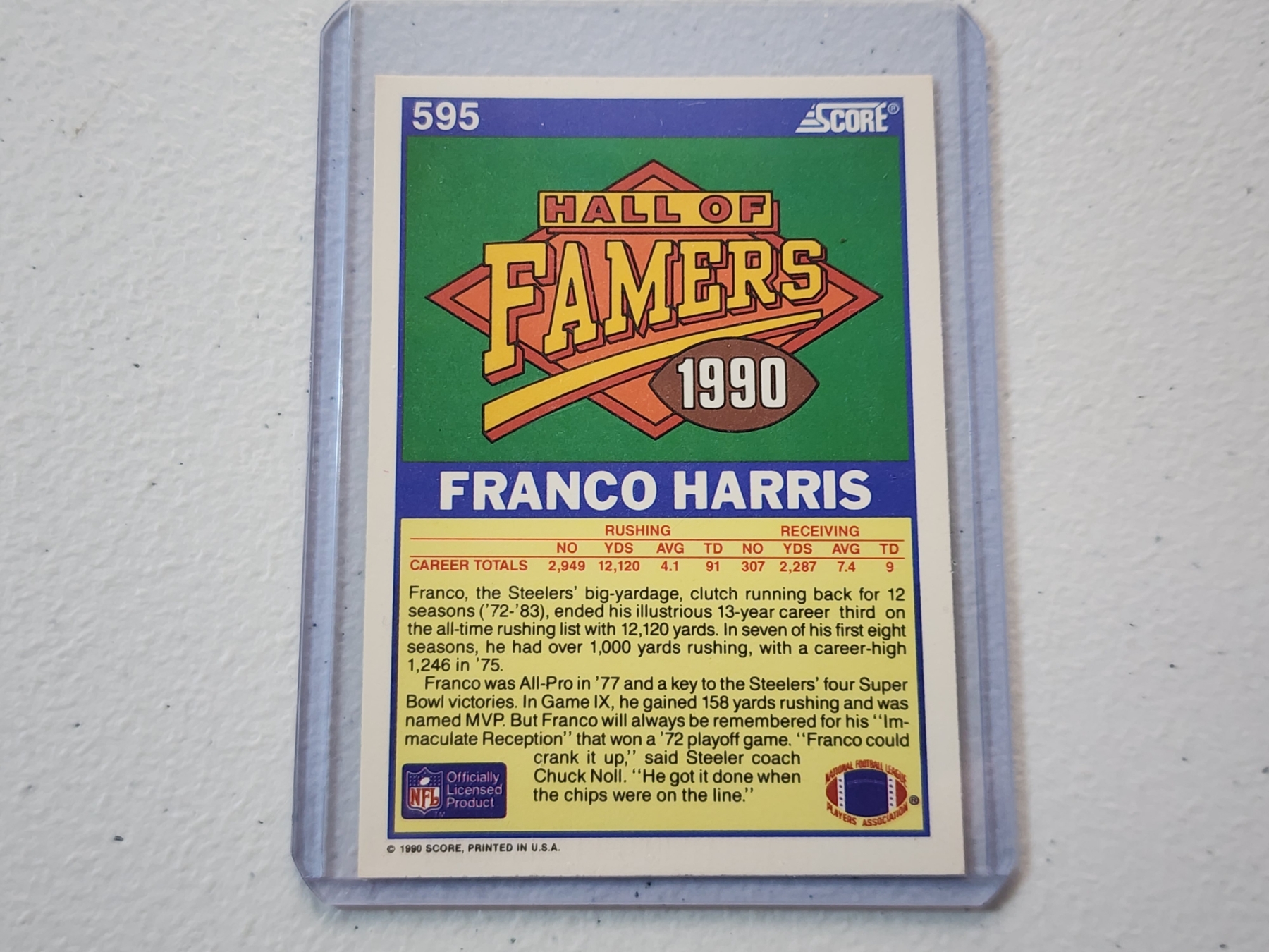 1990 Score Hall of Famer Franco Harris Trading Card #595 - In Protective Holder