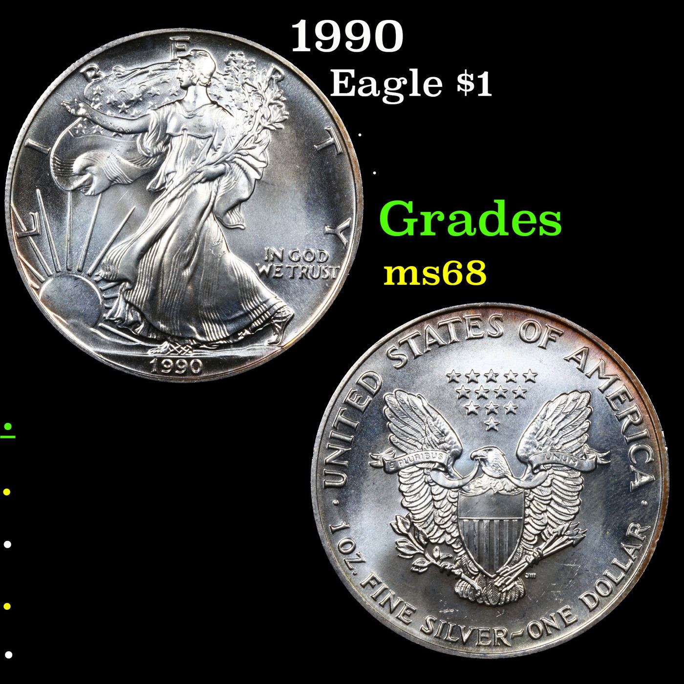 1990 Silver Eagle Dollar $1 Grades GEM+++ Unc.