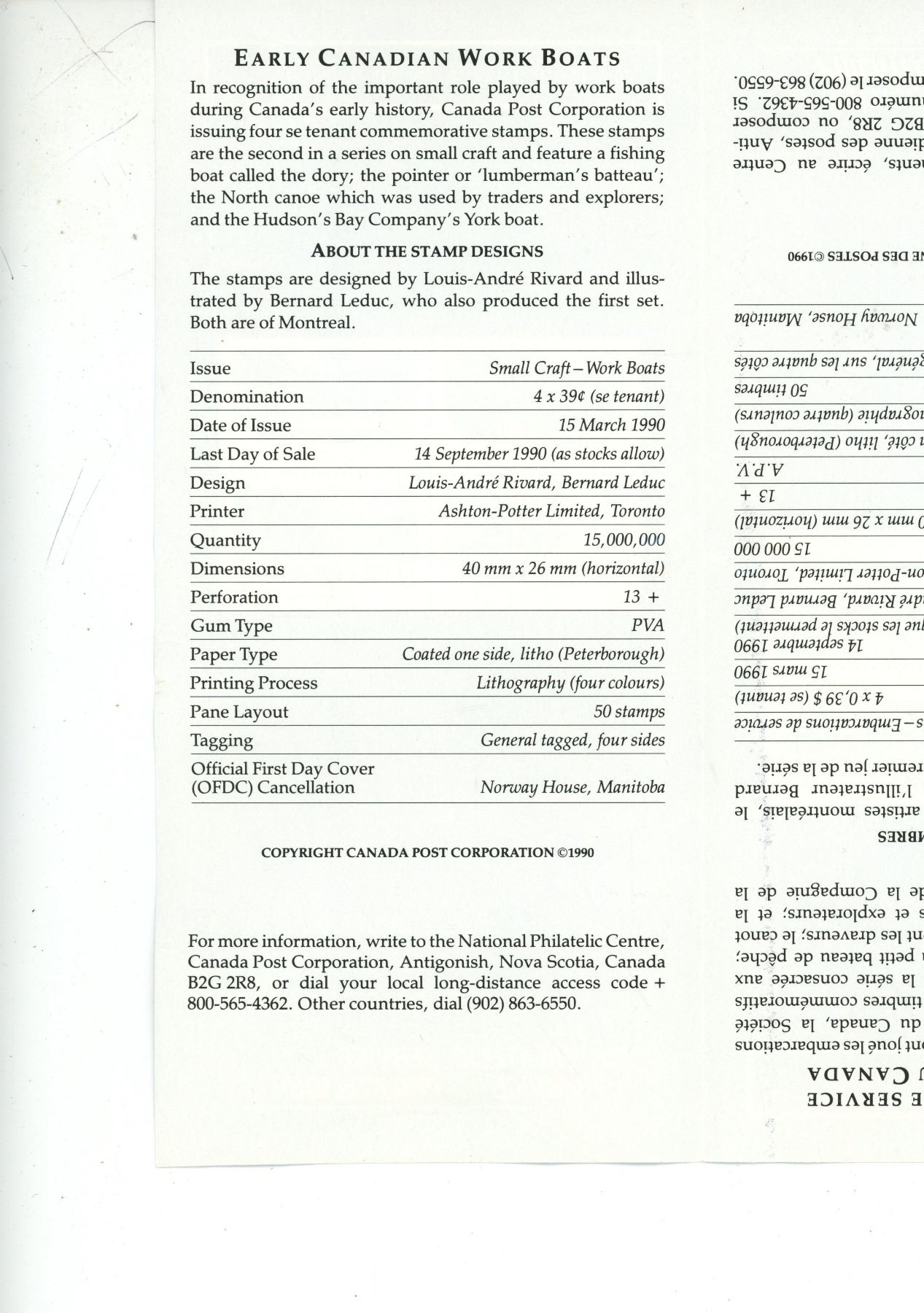 1990, Small Craft-Work Boats; 4x39 cent stamps