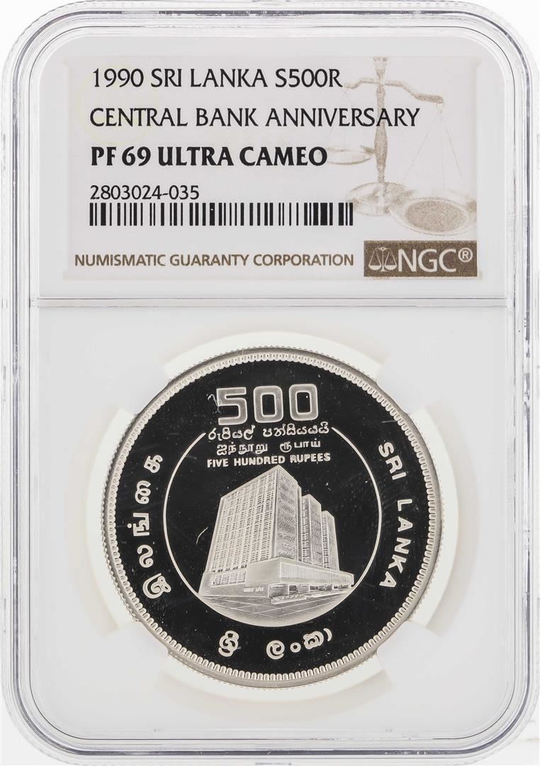 One 1990 Sri Lanka Rupees Silver Coin NGC PF69 Ultra Cameo. NGC Certified.
