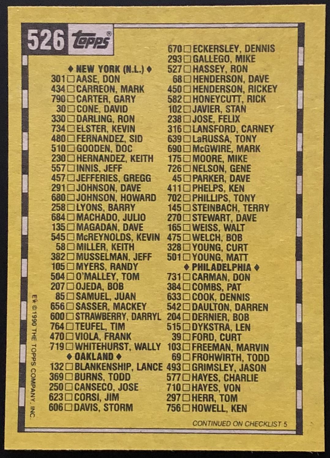 Card #526 MLB, baseball