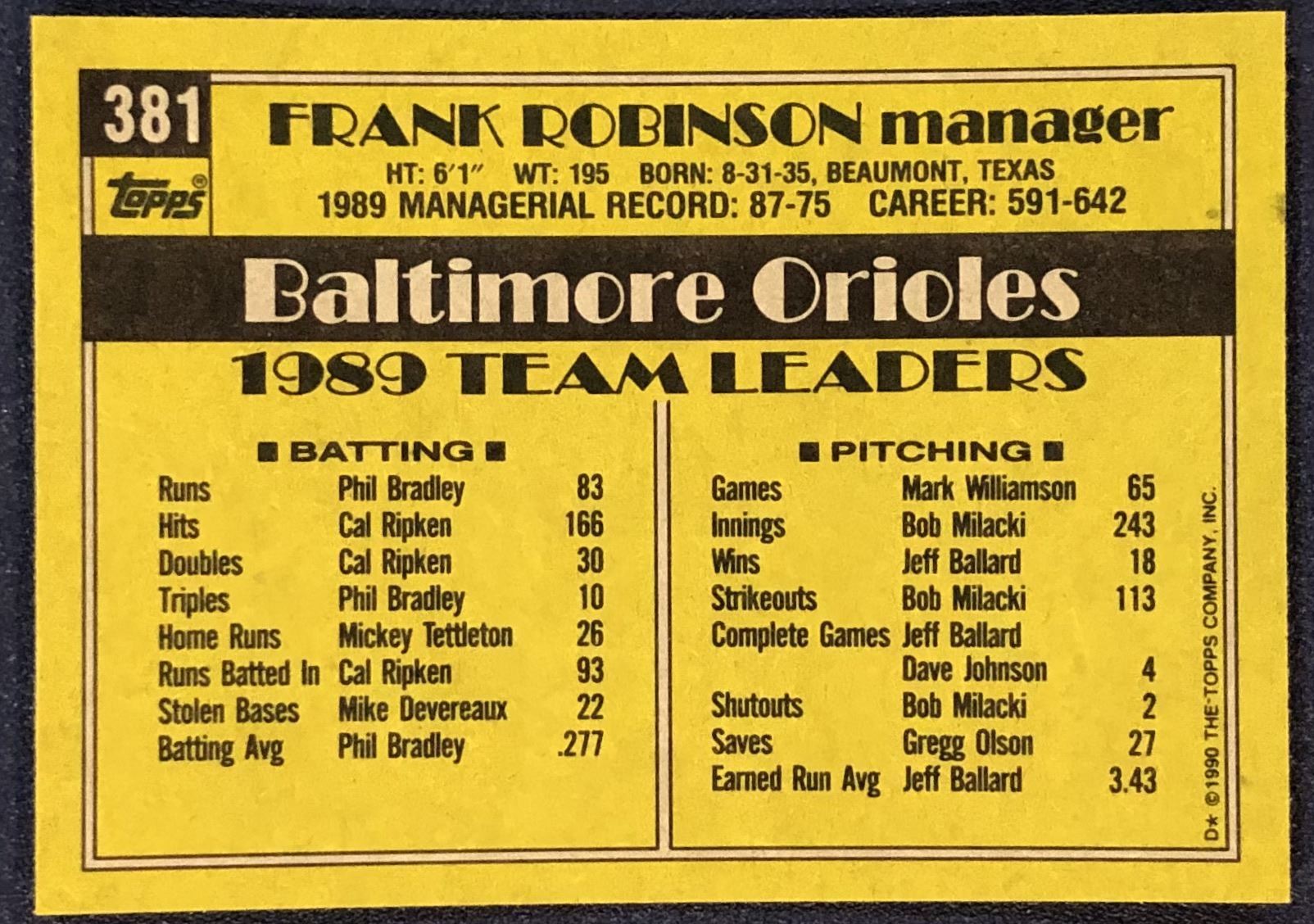 Card #381 MLB, baseball, hall of fame