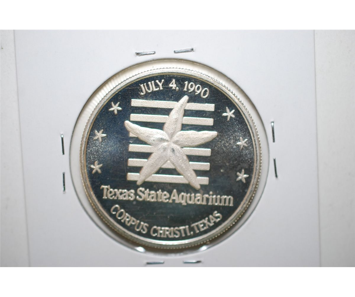 1990 Texas State Aquarium Silver Round; .999 Fine Silver 1 Oz.; EST. $30-40