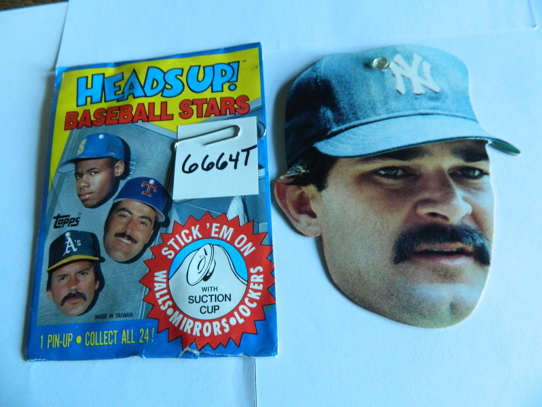 1990 Topps HEADS UP! 4.5"x5" Suction Cup Baseball Star with Packing: Don Mattingly, New York Yanks