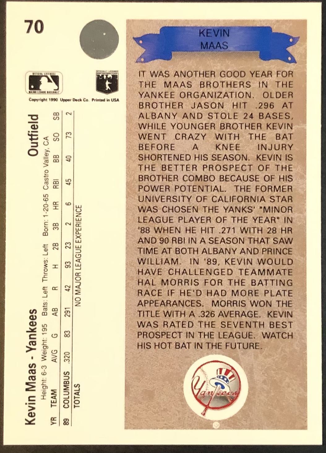 Card #70 UD, baseball, rookie