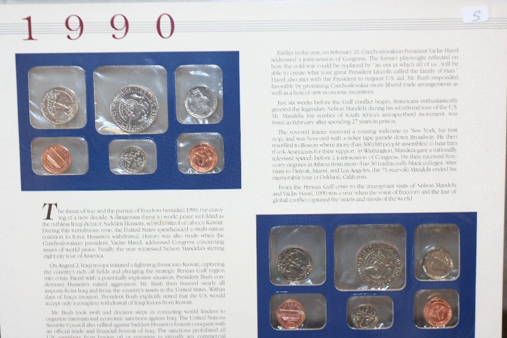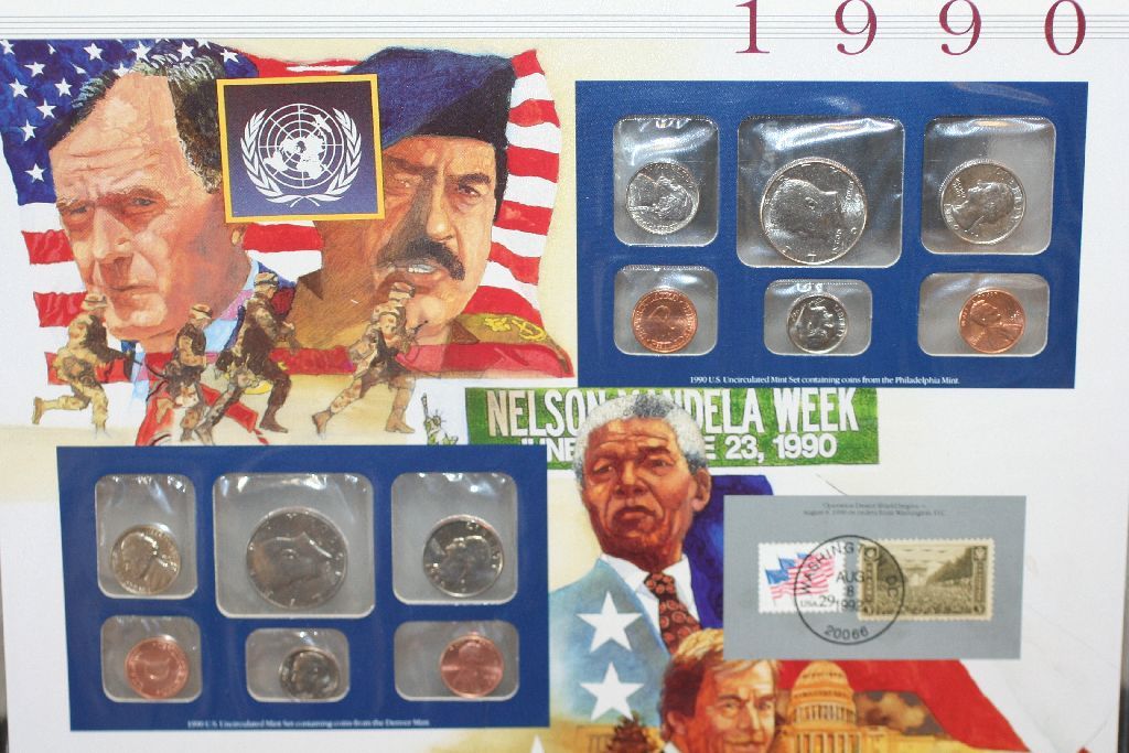 1990 US Mint Coin Set W/Postal Stamps Commerating Operation Desert Shield Begins Dated 1992; P&D Mints; UNC