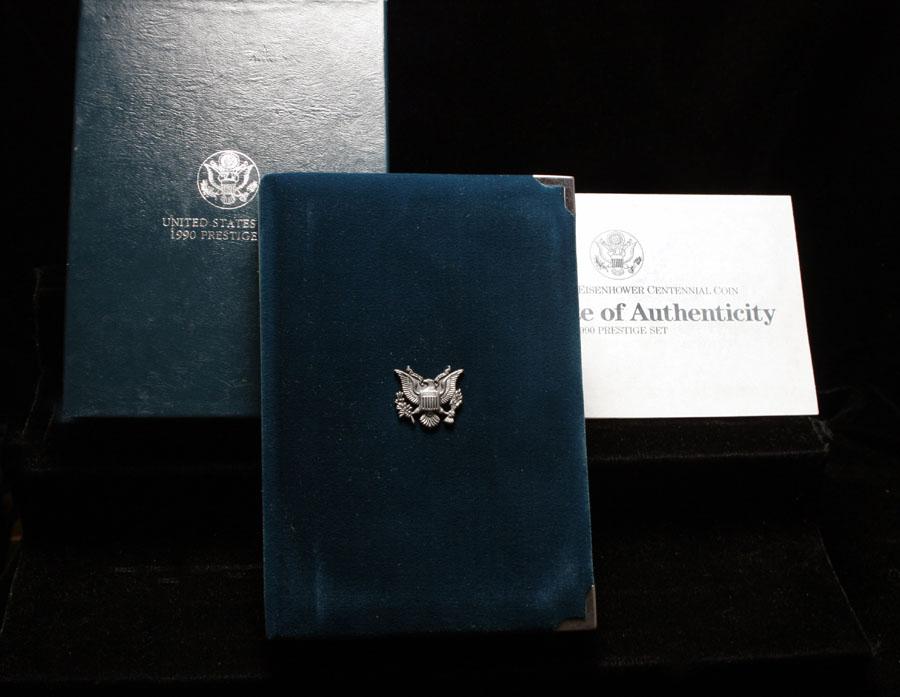 Contains the 1990 Eisenhower 90% silver US Silver Dollar plus the Traditional 5 pieces 1990 Proof Set. Note at current Silver prices the Bonus Silver Dollar alone in this Set would Melt at over $15.00!