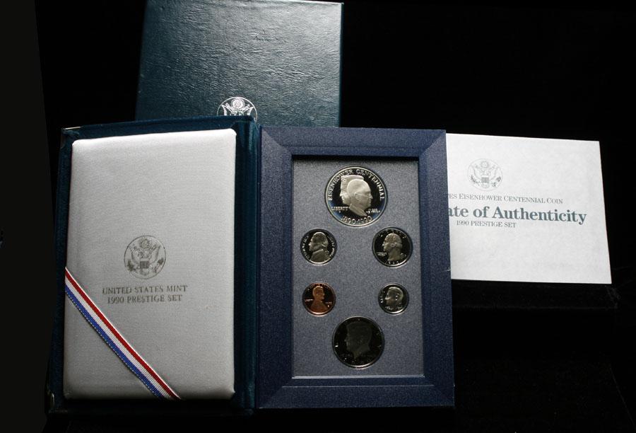 Contains the 1990 Eisenhower 90% silver US Silver Dollar plus the Traditional 5 pieces 1990 Proof Set. Note at current Silver prices the Bonus Silver Dollar alone in this Set would Melt at over $15.00!