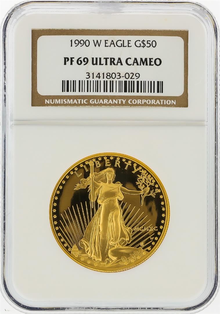 One 1990-W $50 American Gold Eagle Coin NGC Graded PF69 Ultra Cameo. NGC Certified.