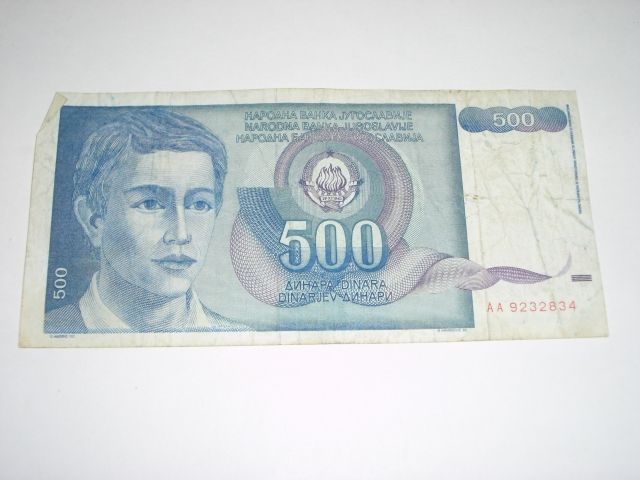 1990 YUGOSLAVIA 500 DINARA NOTE BOOK VALUE $125.00 *EXTREMELY RARE AU HIGH GRADE NOTE*!! ***Coin, Currency & All Items Listed in this auction - Grades, Conditions and Values are not Safe Deposit Coins LLC Responsibilty. Grades, Condition and Values are determined by Consigner(s) & Buyers ONLY***