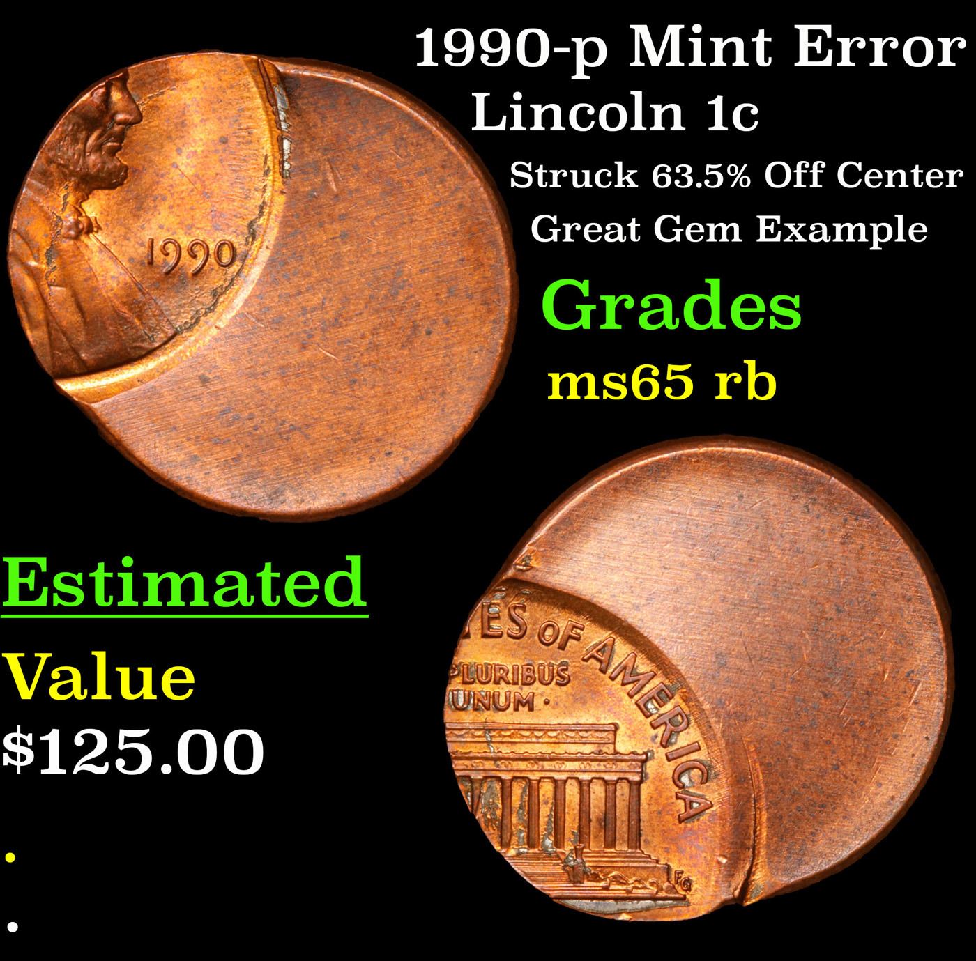 1990-p Mint Error Lincoln Cent 1c Grades GEM Unc RB.