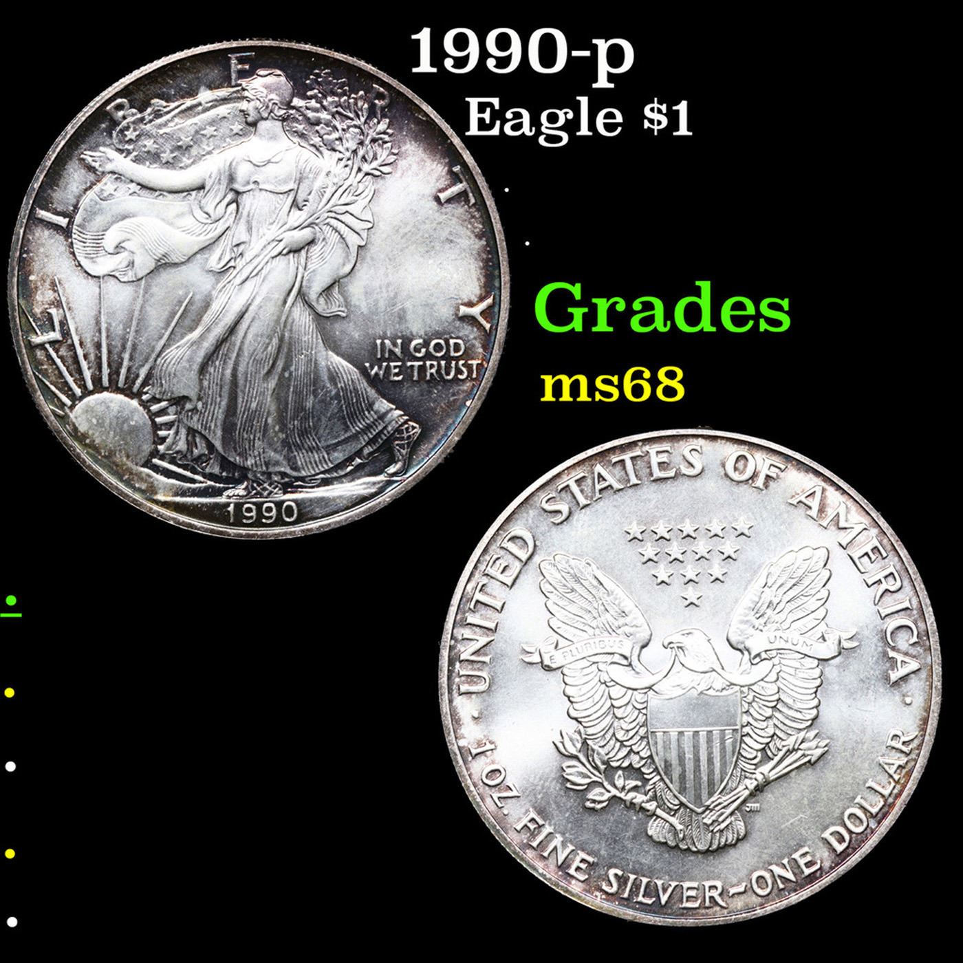 1990-p Silver Eagle Dollar $1 Grades GEM+++ Unc.