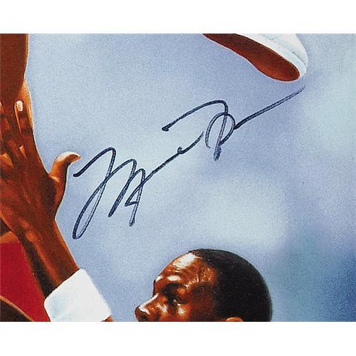 <B>1990's Michael Jordan Signed Giclee.</B></I> Fans of photorealistic artwork will be stunned by the mastery of this limited edition (9/98) print on canvas, featuring five different portraits of the game's greatest figure from all eras of his incredible playing career. Matching the prodigious dimensions (33x41" framed) of this impressive work is an oversized blue sharpie signature from the man himself. Jordan collectors take note--this is not a piece you see every day. One of the largest and most aesthetically commanding Jordan pieces available on the market. <I>LOA from PSA/DNA. LOA from James Spence Authentication.</B></I><BR><BR><b>Shipping:</b> Framed - without Glass, Large (<a target="_blank" href="http://www.heritageauctions.com/common/shipping.php">view shipping information</a>)