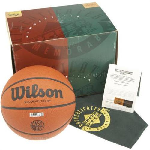 <B>1990's Michael Jordan Single Signed UDA Basketball.</B></I> Arguably the most significant figure to stride upon the American athletic stage since Babe Ruth, the legendary Michael Jordan offers up here the definitive collectible by which to remember him. The large 10/10 black sharpie signature upon this "Wilson" ball was witnessed by an Upper Deck staff member, providing the ironclad provenance one must demand for an autograph so commonly forged in the hobby. All authenticating stickering and paperwork is here as well, along with the original UDA velvet pouch and storage box. <I>COA from UDA. LOA from PSA/DNA. LOA from James Spence Authentication.</B></I><BR><BR><b>Shipping:</b> Miscellaneous Collectibles, Larg (<a target="_blank" href="http://www.heritageauctions.com/common/shipping.php">view shipping information</a>)