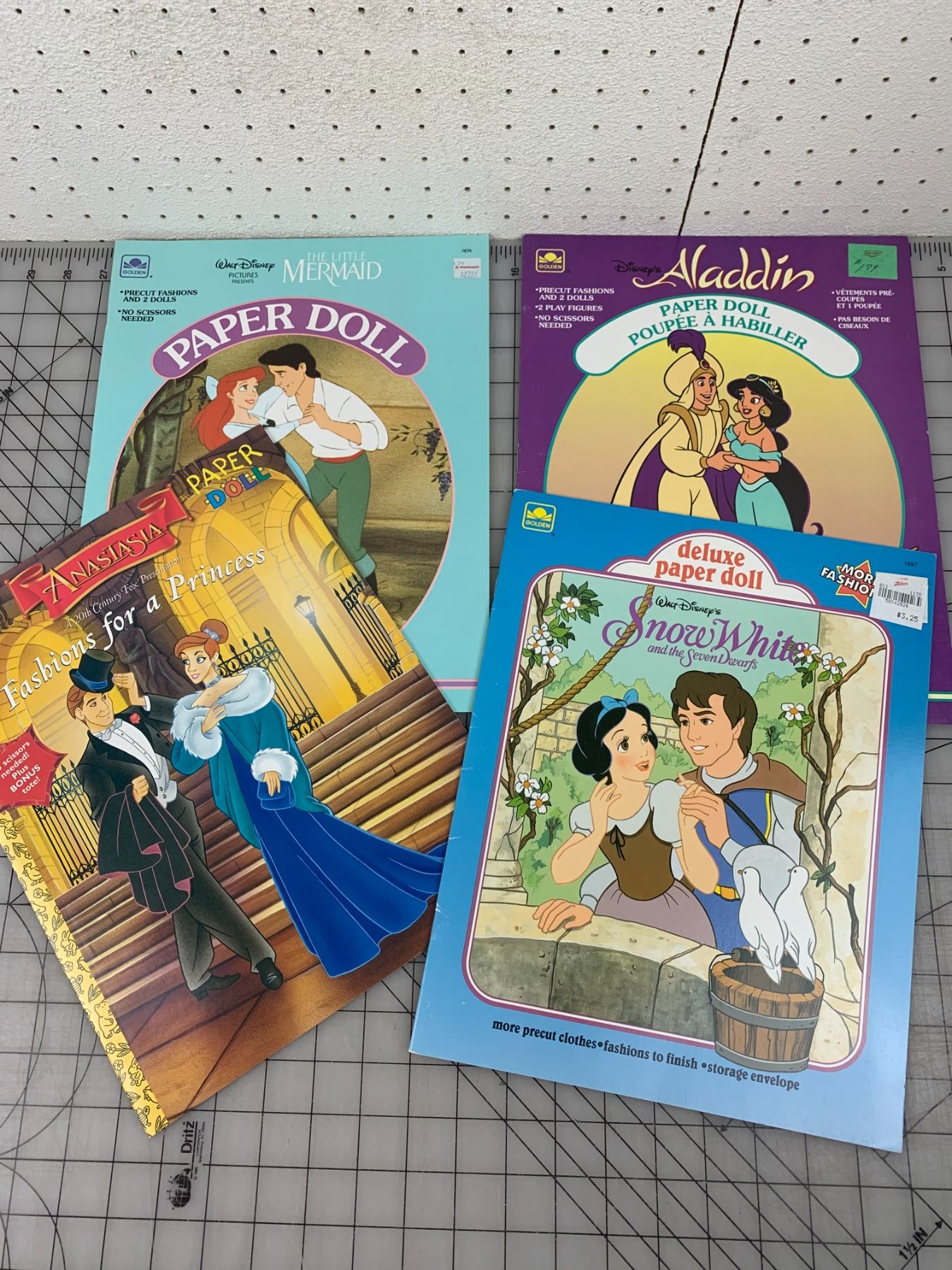 1990s VINTAGE PAPER DOLLS UNCUT BOOKS DISNEY SNOW WHITE LITTLE MERMAID