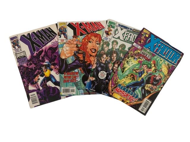 Two issues of X Man #36 and #41 from March and August 1998. Also included are two issues of X Factor #146 and #148 from June and August 1998. Good condition. From the collection of a former Marvel employee.