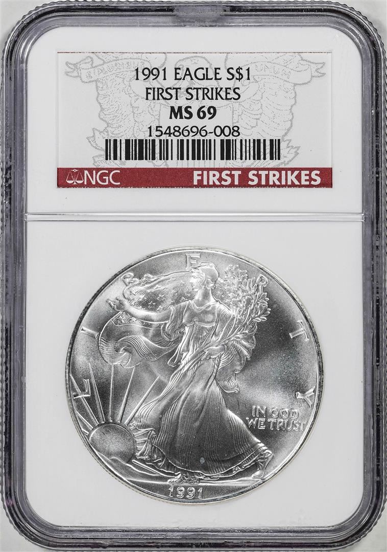 One 1991 $1 American Silver Eagle Coin NGC MS69 First Strikes. NGC Certified.