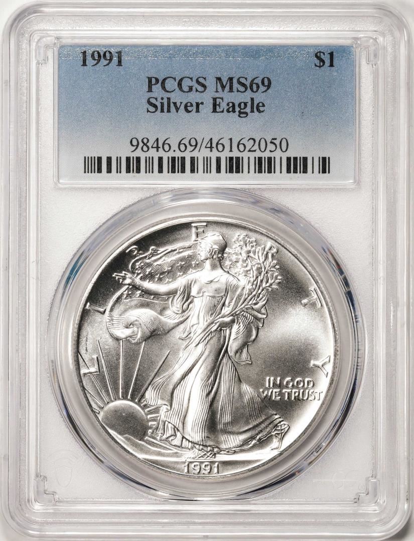 One 1991 $1 American Silver Eagle Coin PCGS MS69. PCGS Graded.