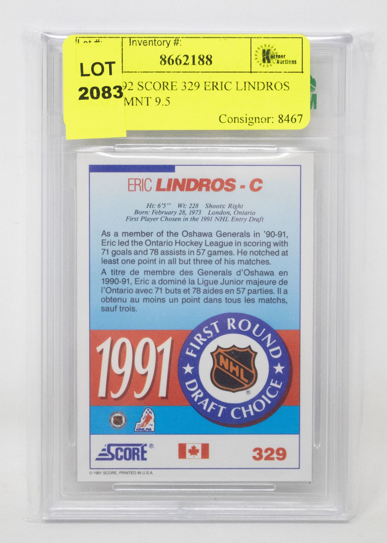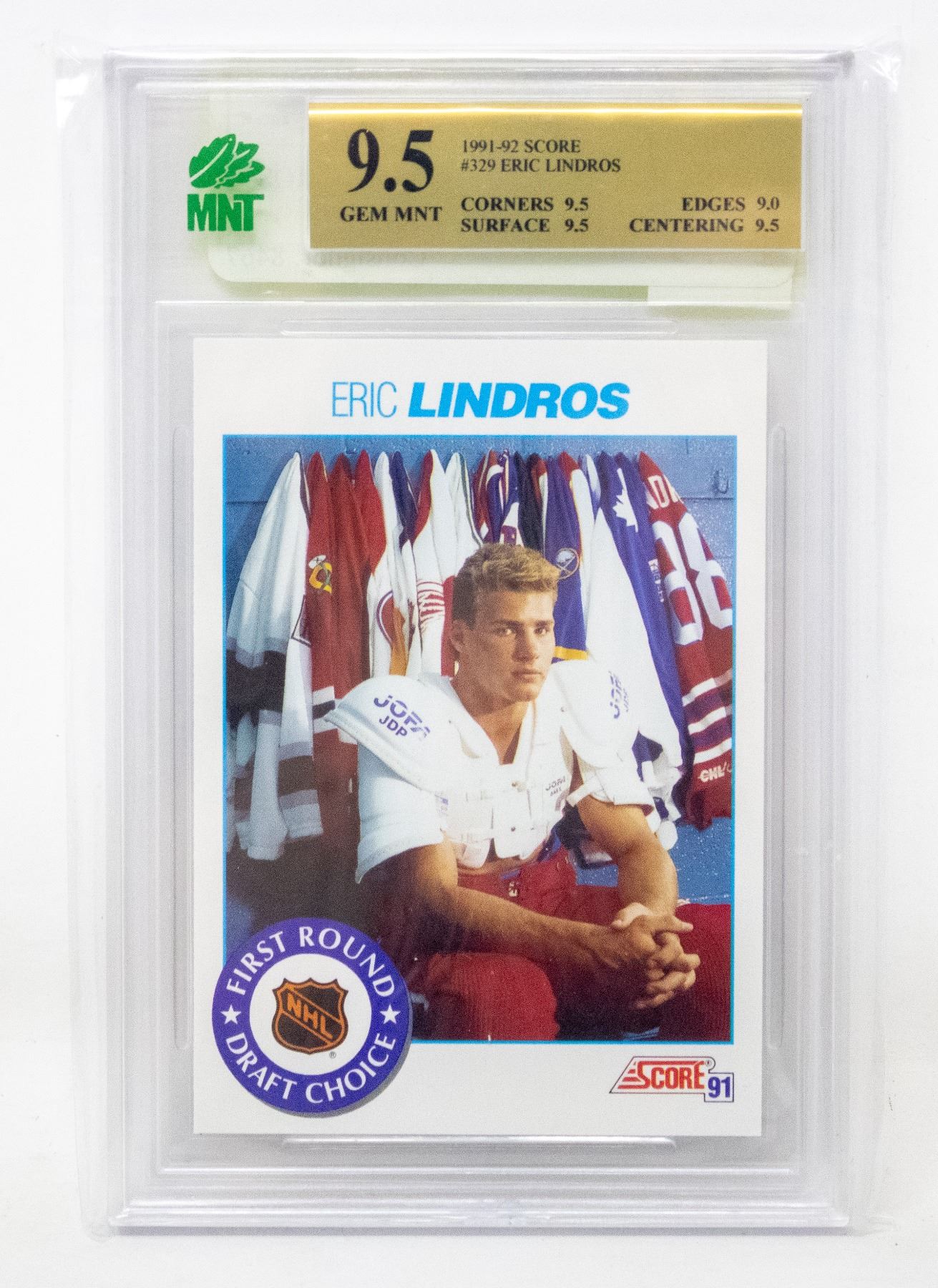 BECAUSE MNT GRADES SO SIMILARLY TO BECKETT, I LOOKED THE POP REPORT UP ON BGS AND THERE ARE A TOTAL OF (6) 9.5'S EVER GRADED. MNT ALSO DOESN?T HAVE A CARD GRADED HIGHER FOR THIS LINDROS DRAFT CARD. PER WIKIPEDIA, LINDROS IS CANADA'S ALL TIME