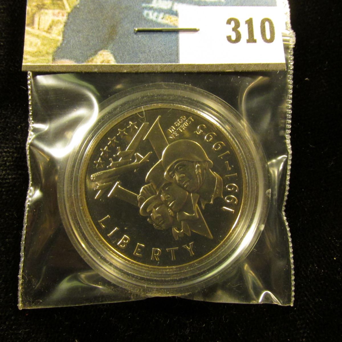 1991-1995 P World War II Proof 68+ Commemorative Half-Dollar, encapsulated.