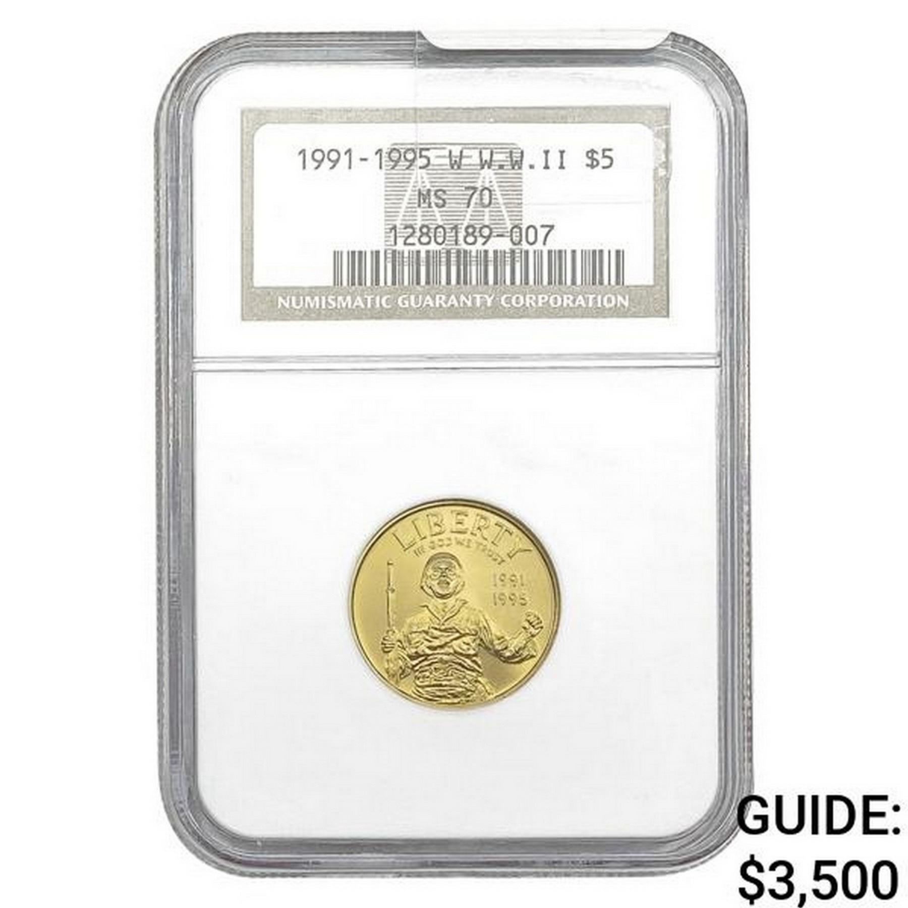 1991-1995 W 0.2419oz Gold $5 WWII NGC MS70