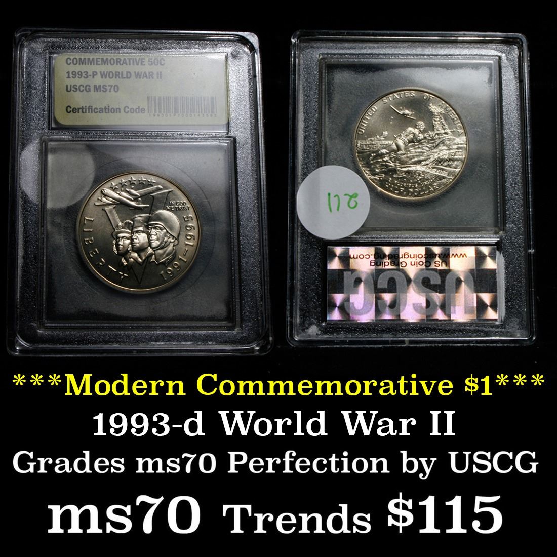 1991-1995-p WWII Modern Commem Half Dollar 50c Graded ms70, Perfection By USCG.