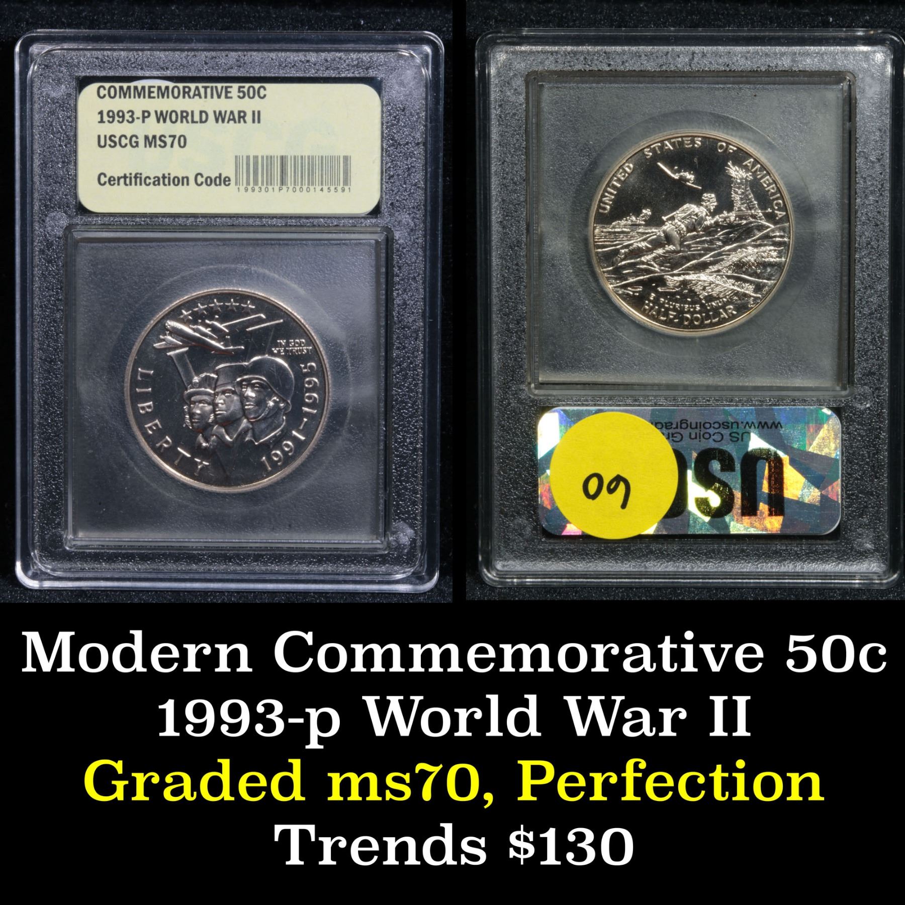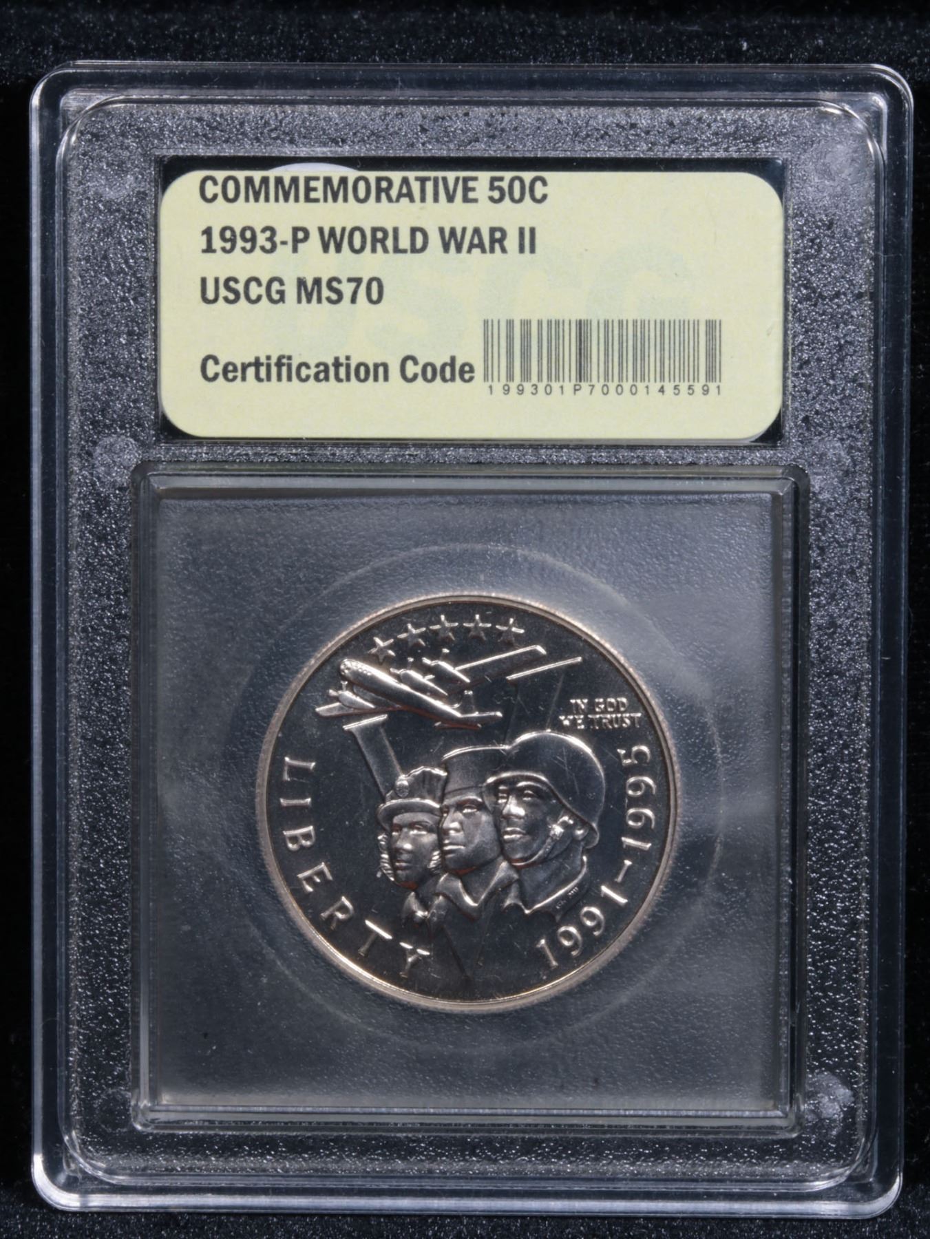 1991-1995-p WWII Modern Commem Half Dollar 50c Graded ms70, Perfection By USCG.