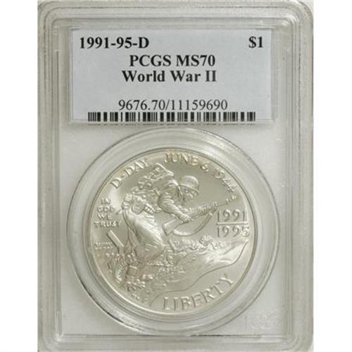 1991-1995D $1 World War II Silver Dollar MS70 PCGS