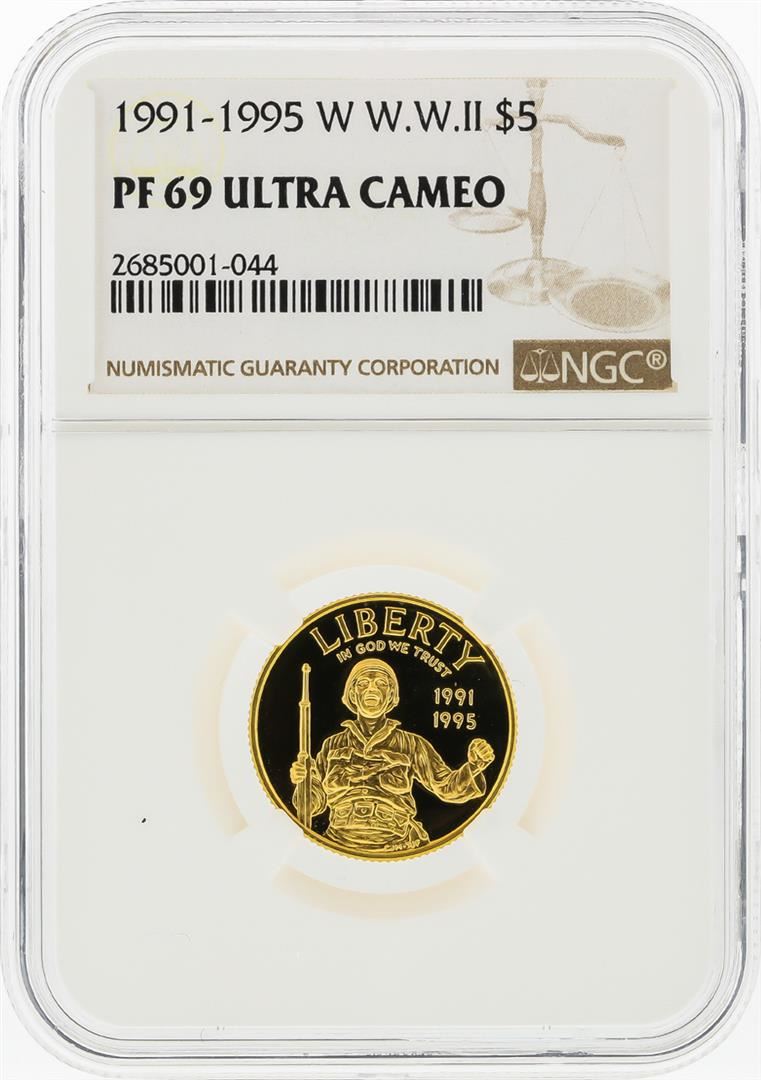 One 1991-1995W $5 W.W.II Gold Coin NGC Graded PF69 Ultra Cameo. NGC Certified.