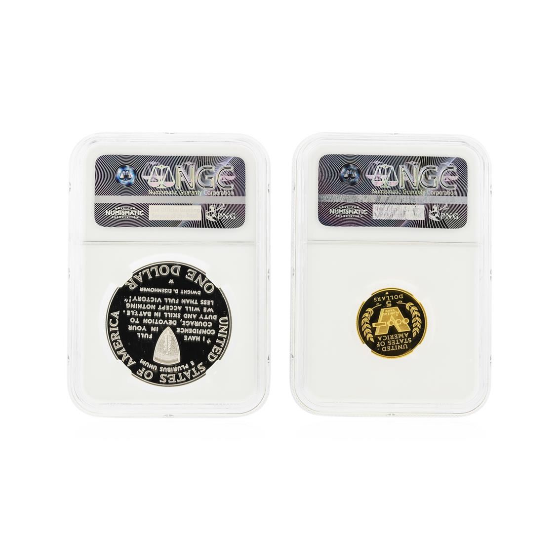 1991-1995W WWII Commemorative $5 Gold Coin and $1 Silver Coin Set NGC PF69 Ultra