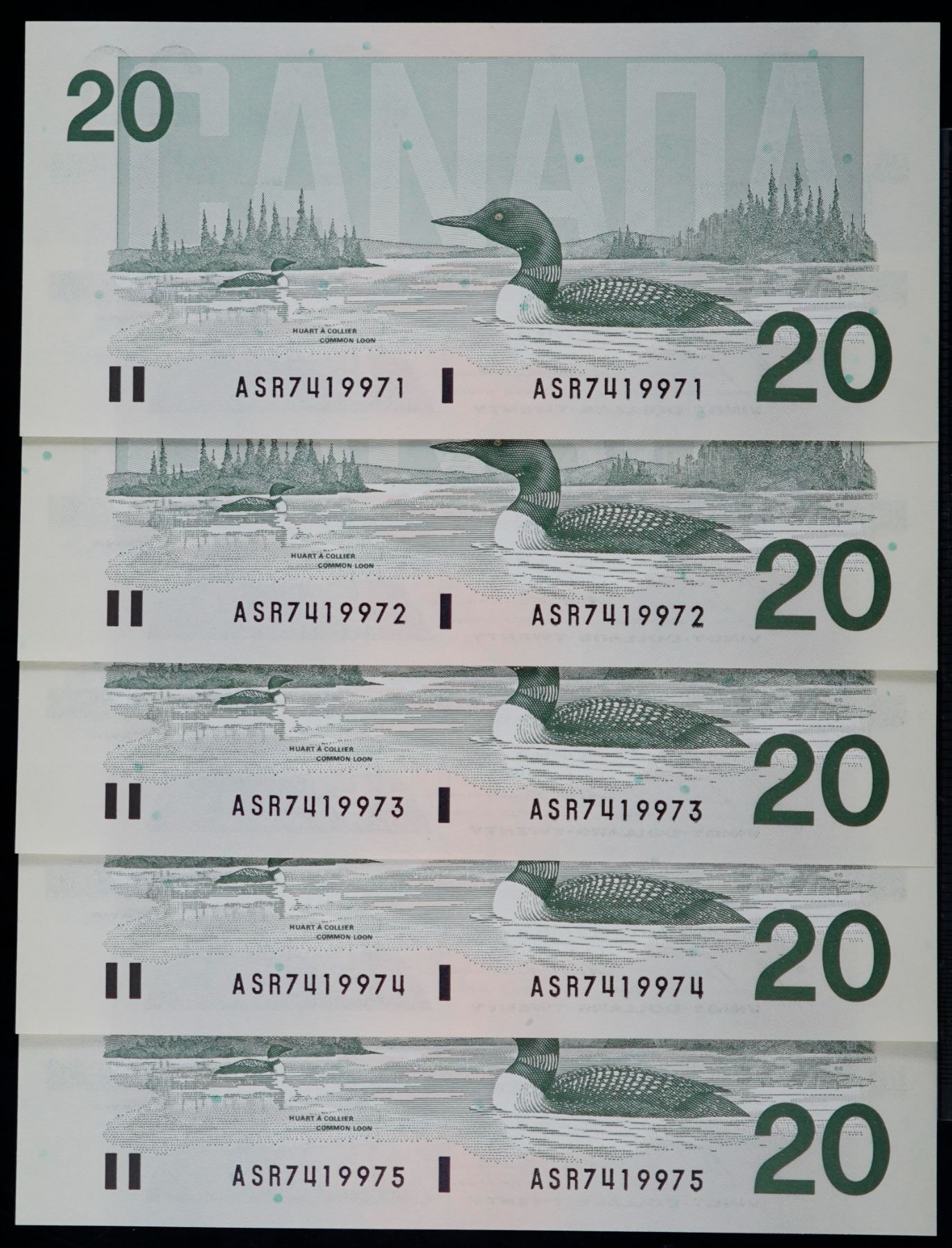 1991 $20 #ASR7419971-9975 Lot of 5 Gem Uncirculated notes.
