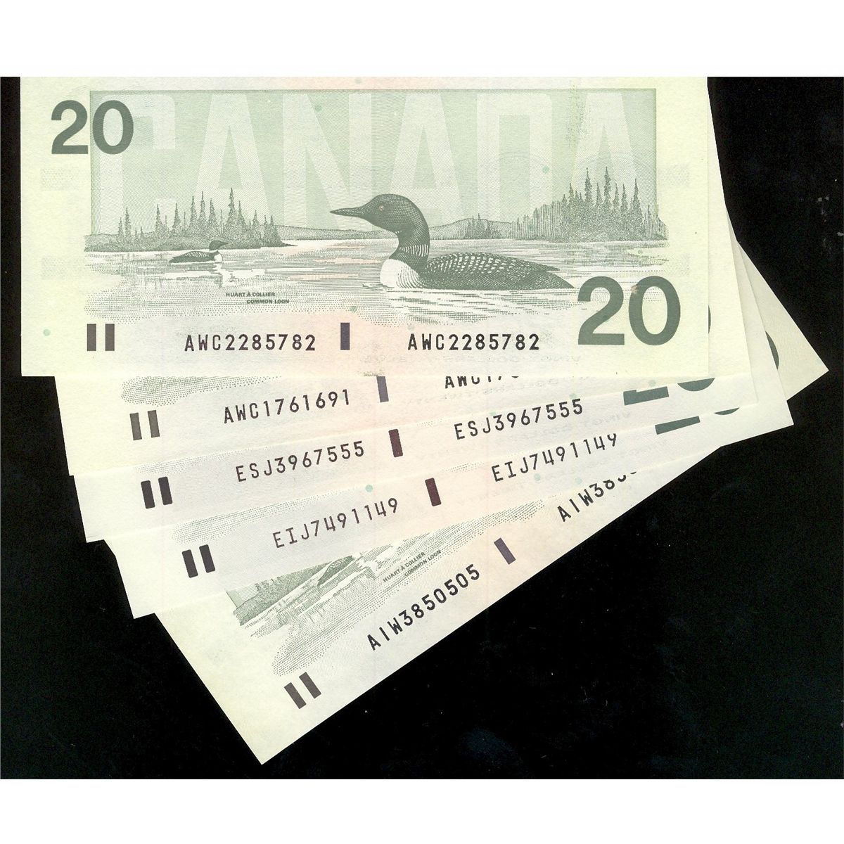 1991 $20 BC-58a-I #EIJ7491149, BC-58a-ii #AIW3850505, BC-58a ESJ3967555 & BC-58c #AWC1761691, AWC2285782. Lot of 5 notes all crisp UNC.