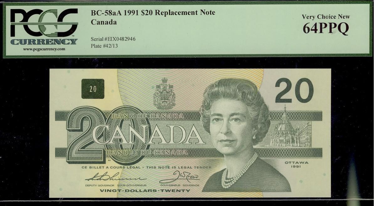 1991 $20 BC-58aA EIX-No serifs PCGS UNC64