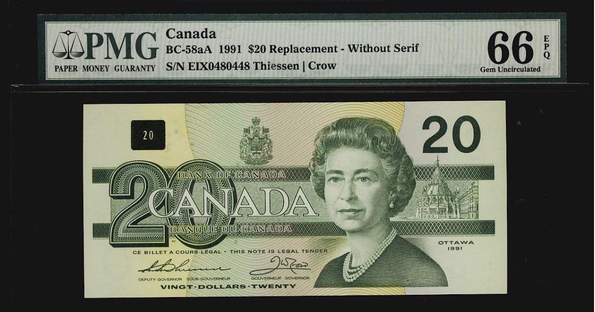 1991 $20 BC-58aA #EIX0480448, PMG Gem UNC66EPQ.