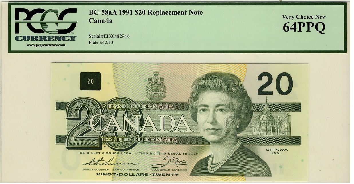 1991 $20 BC-58aA EIX0482946 -No serifs PCGS UNC64