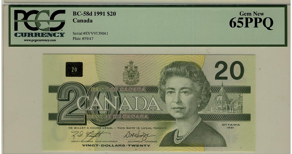 1991 $20 BC-58d EVV9539041 PCGS UNC65PPQ