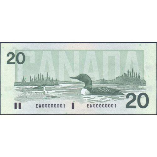 1991 Twenty Dollars Knight-Dodge, BC-58d Very Low Serial Number EWO0000001, PMG Gem Uncirculated 66 Exceptional Paper Quality