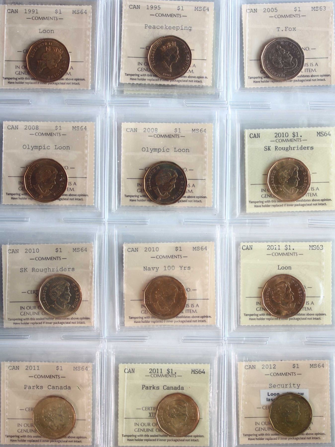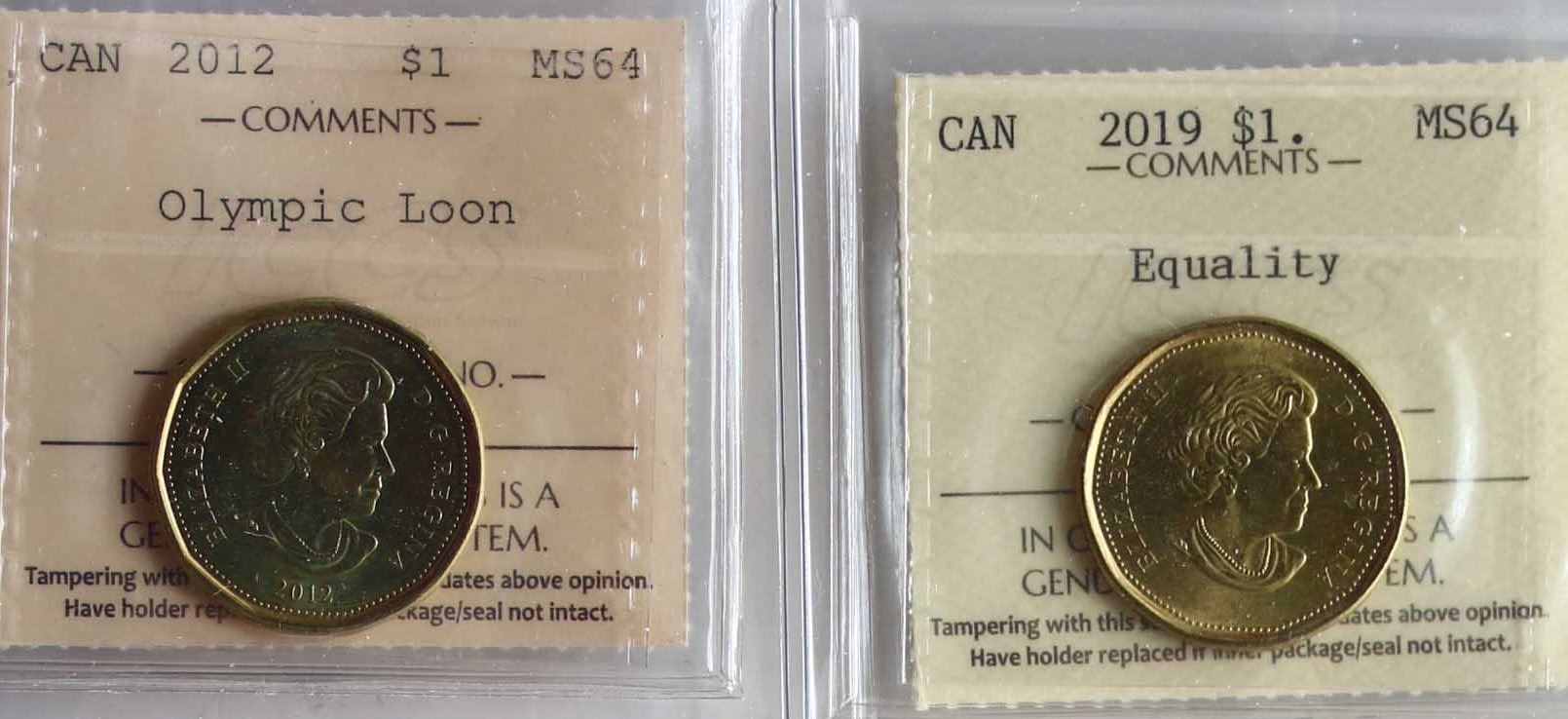 1991-2019 $1 "Loon" All 17 coins ICCS Choice Mint State-63 to Very Choice Mint State-64.