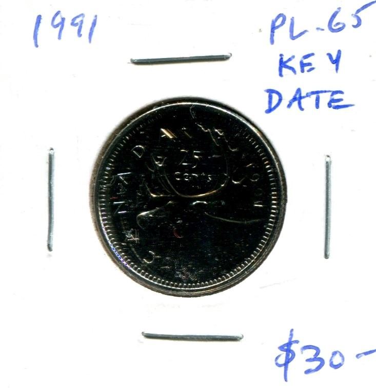 1991 25 Cents. Key Date. Mintage of 459,000. Proof Like. Nice.