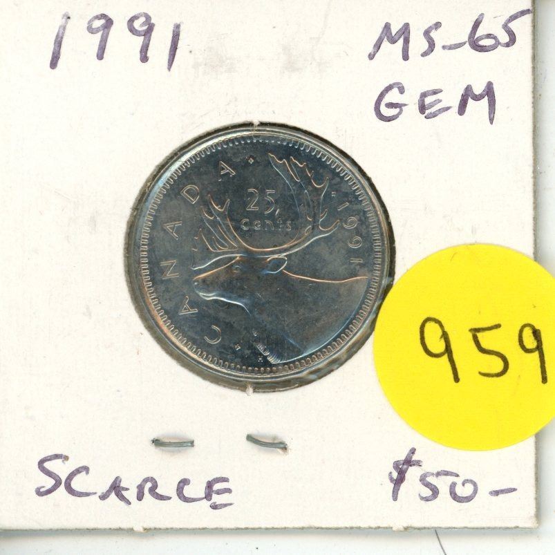 1991 25 Cents. Scarce with only 459,000 minted. Gem MS-65.