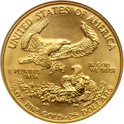 1991 $25 Gold Eagle. NGC graded MS-69. Low mintage of only 24,100 pieces struck. ½ oz.