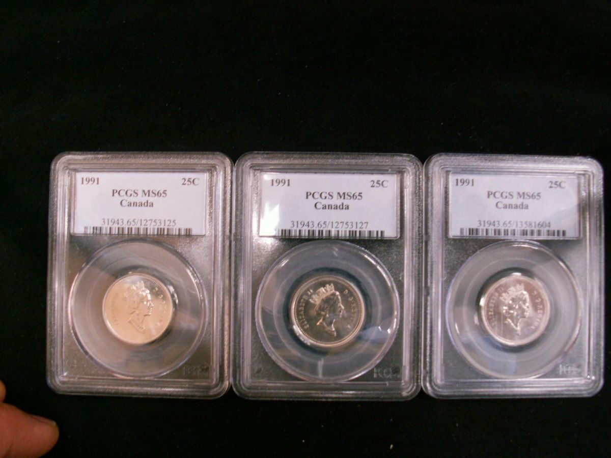 1991 25¢ PCGS MS65. Lot of 3 coins.