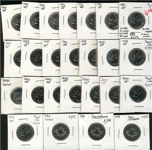 1991 (5), 1997 (5), 1999 (6),1999 tokens (3), 2000 (6), 2000 token. A nice lot of 26 better modern coins. Grades vary from MS-63 to PL-65.