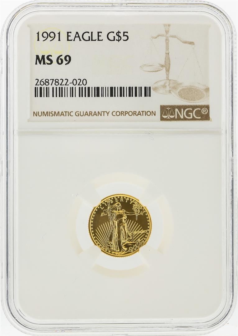One 1991 $5 American Gold Eagle Coin NGC Graded MS69. NGC Certified.