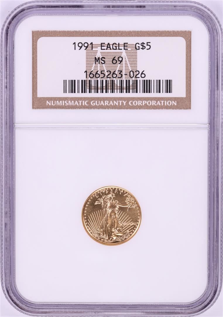 One 1991 $5 American Gold Eagle Coin NGC MS69. NGC Certified.